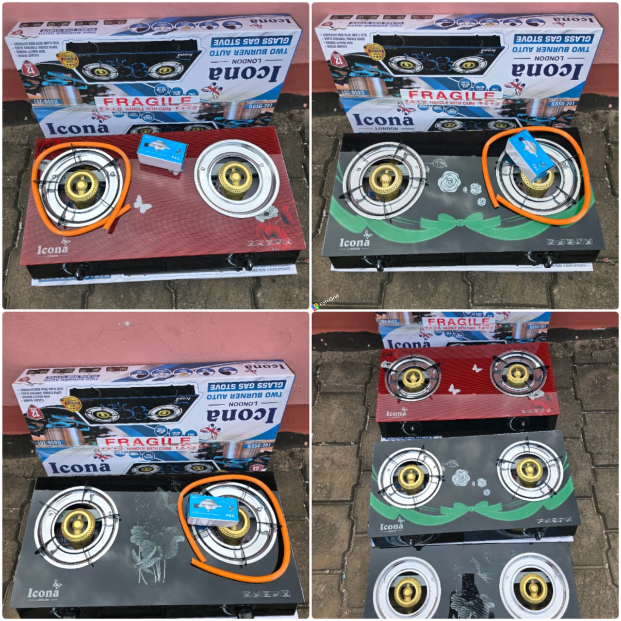 Icona 2 Burner Glass Top Gas Stove + Free Regulator & Pipe